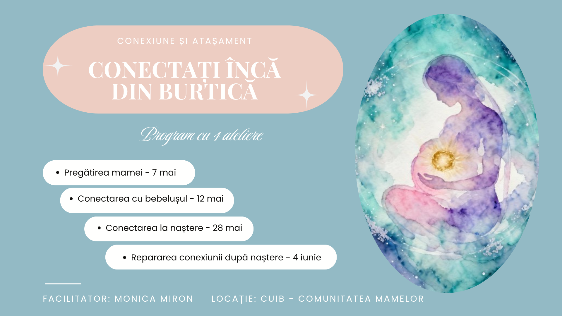 Atelierul 1 — Pregătirea mamei pentru conectare și atașament – Joi, 7 mai 2026, la 16.30